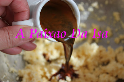 Bata a manteiga com açucar e o mel até ficar mole,adicione o café e uma